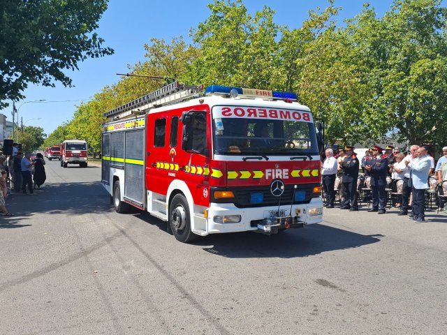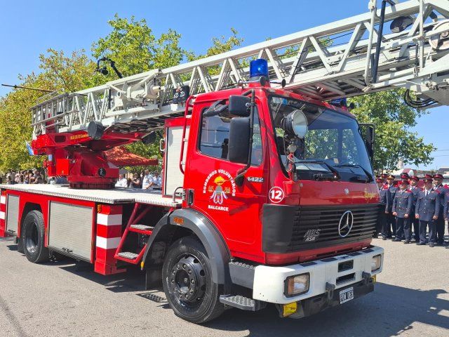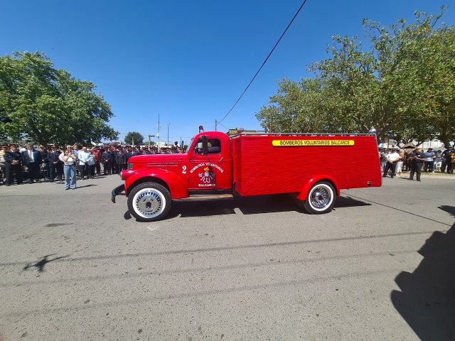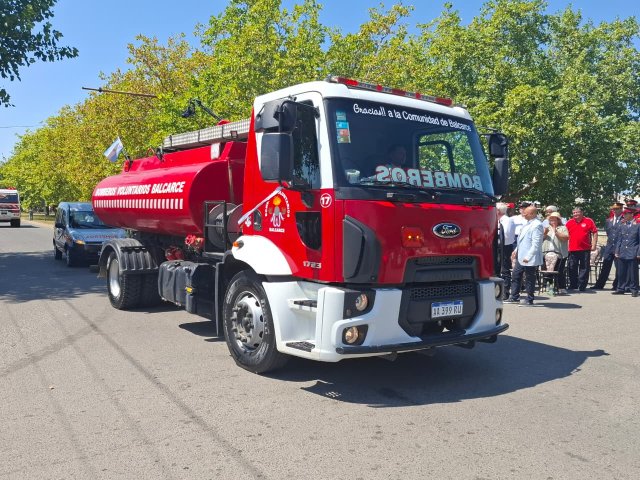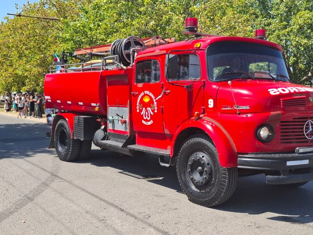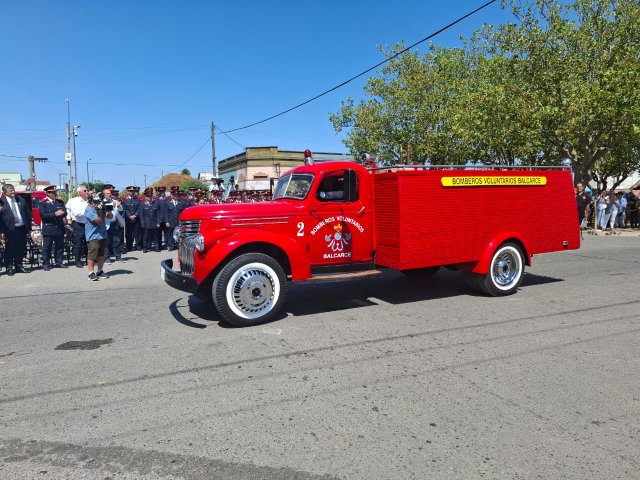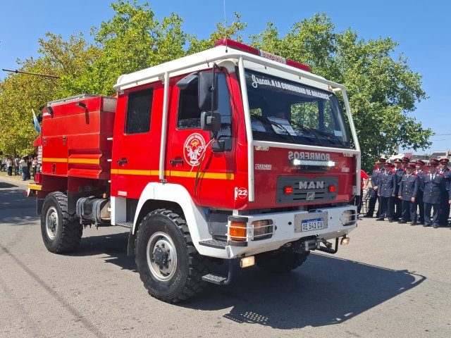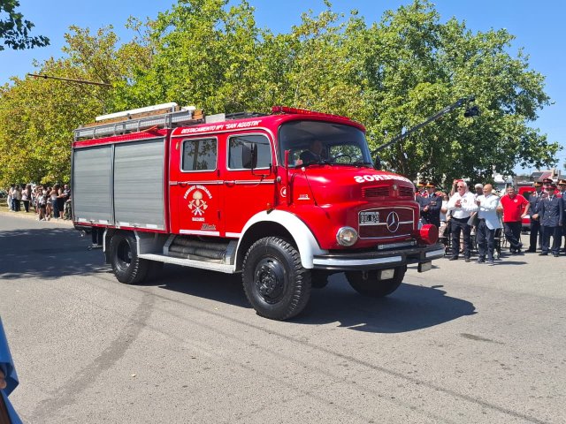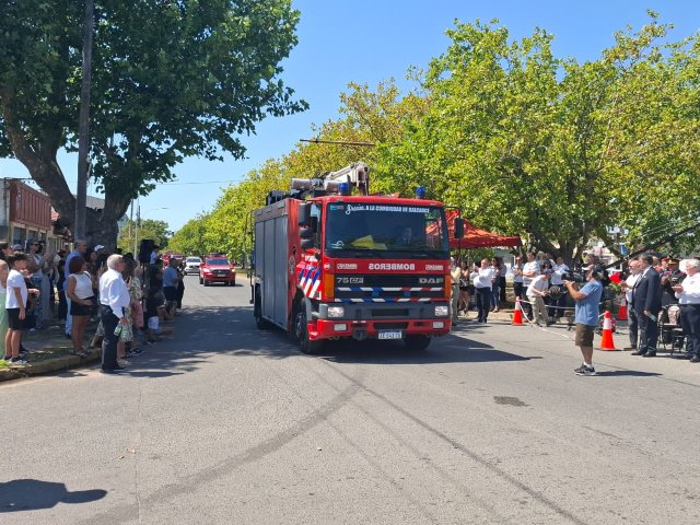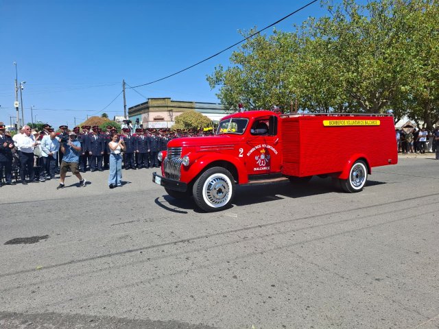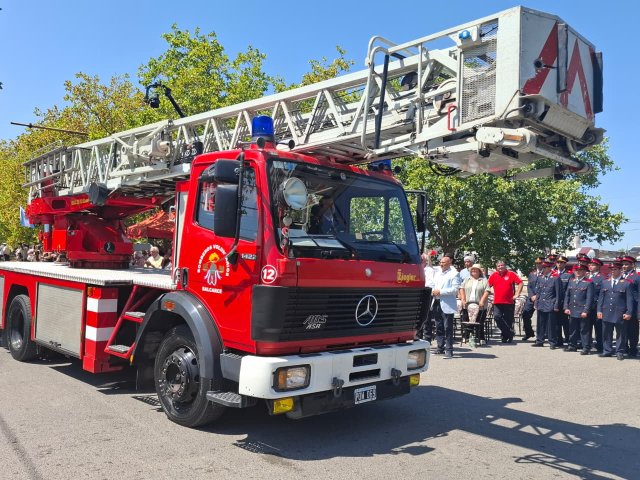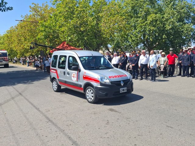 El desfile de unidades de los Bomberos Voluntarios se desarrolló sobre la avenida Del Valle, entre calles 2 y 4, y fue uno de los momentos centrales del acto por los 75 años de la institución. Del recorrido participaron todas las unidades operativas, a las que se sumó la Unidad N°2, recientemente restaurada tras un año de trabajos y presentada oficialmente para la ocasión, generando un fuerte acompañamiento del público presente.
