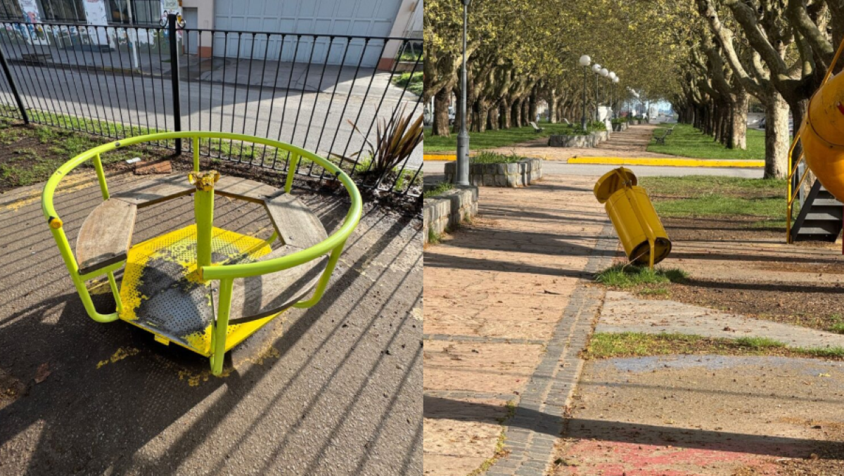 Como consecuencia, se constató la rotura de un cesto de basura y de uno de los juegos infantiles del espacio público.