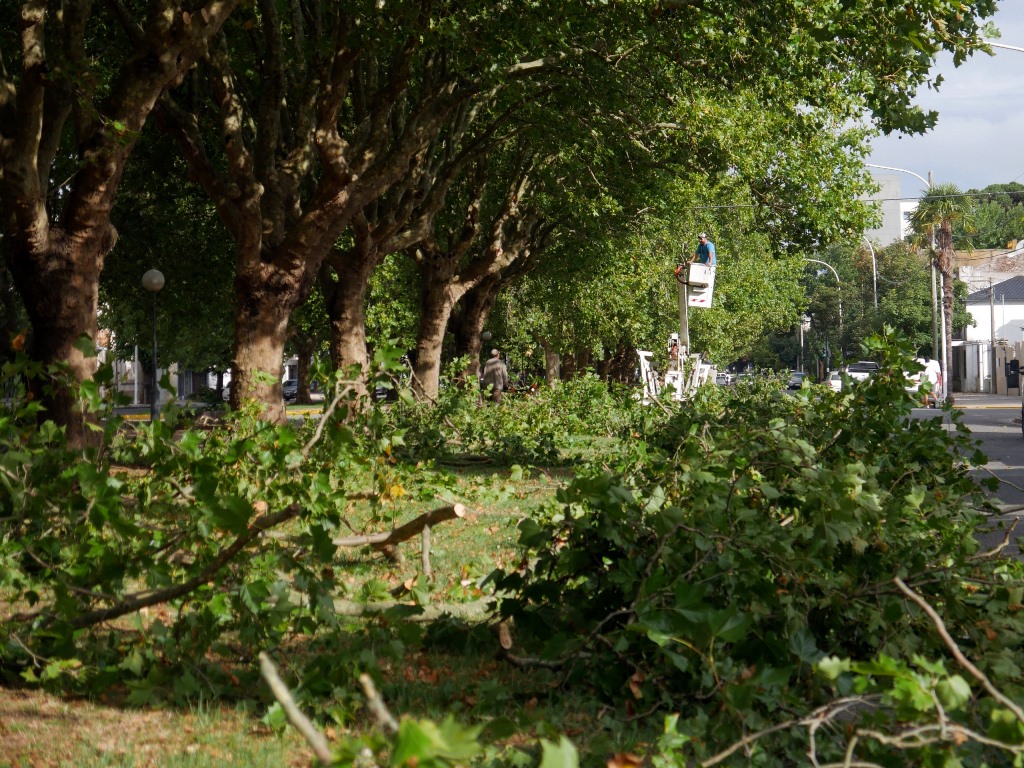 La Dirección de Espacios Públicos, Ambiente y Servicios Generales inició este martes un plan de intervención sobre el arbolado del boulevard Favaloro, con el objetivo de mejorar la transitabilidad y las condiciones de seguridad en la vía pública.