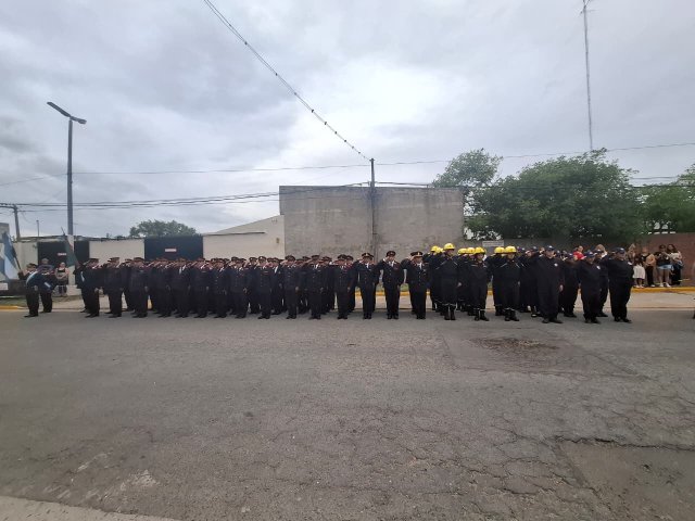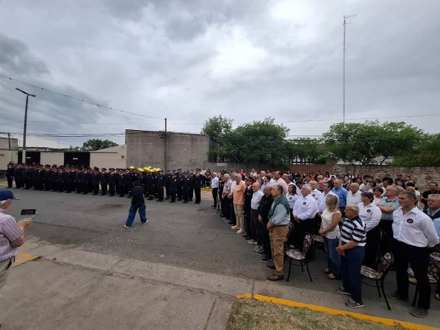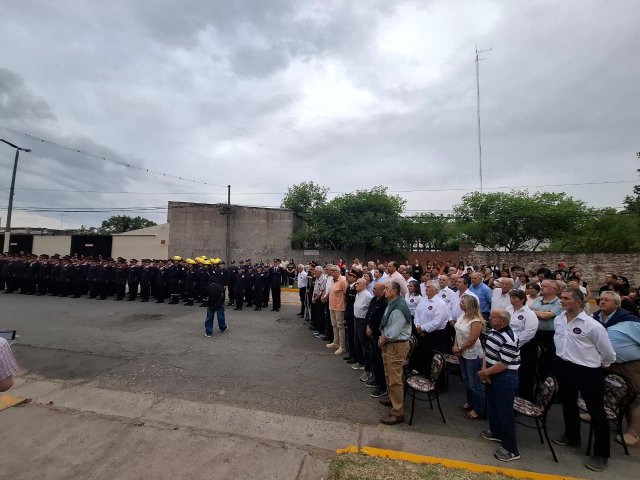 La ceremonia contó con la presencia del intendente Esteban Reino, el secretario de Gobierno Ricardo Stoppani, el presidente de la Asociación de Bomberos Voluntarios, Silvio Cattáneo, el jefe del Cuerpo Activo, Federico Mancini, el presidente del Honorable Concejo Deliberante, Agustín Cassini, además de autoridades políticas, exintegrantes del Consejo Directivo, colaboradores, Cuerpo Activo, Cuerpo de Reserva, Escuela de Cadetes, familiares de bomberos y vecinos.