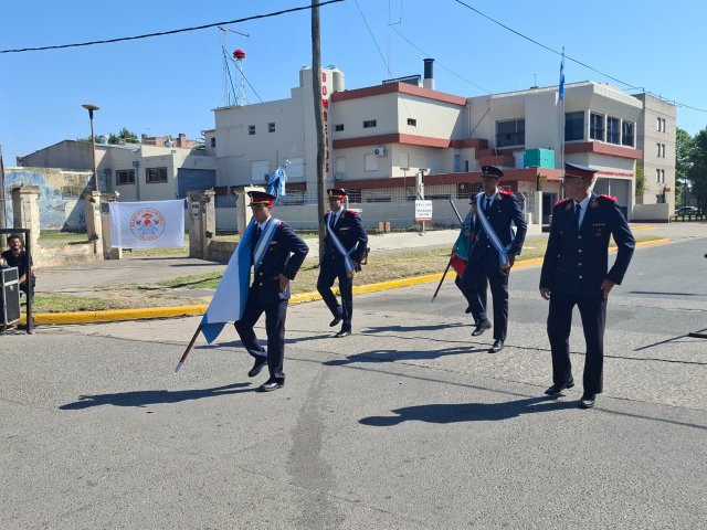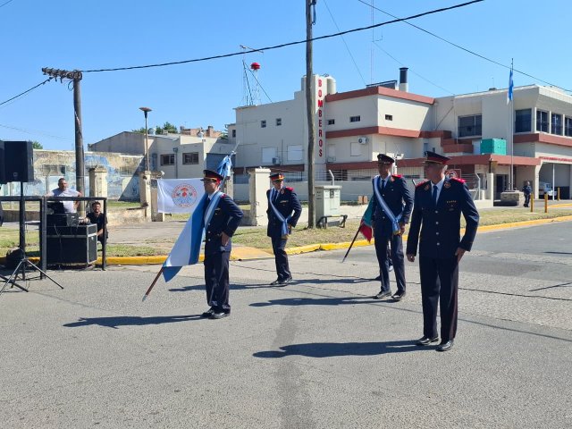 El acto comenzó con la presentación de las banderas de ceremonia y la posterior entonación del Himno Nacional Argentino. Luego, se realizó un intercambio de reconocimientos y salutaciones por parte de asociaciones de bomberos vecinas, que entregaron diversas placas conmemorativas a la institución local.