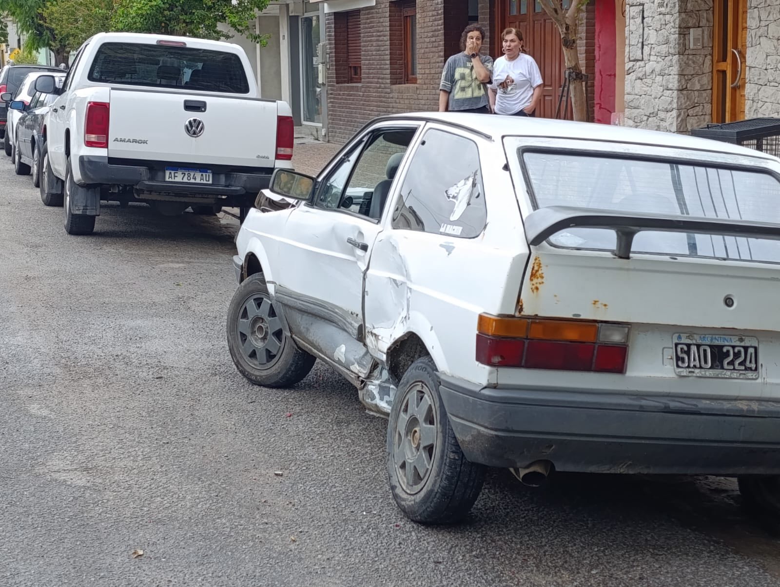 A raíz de la maniobra, el conductor de este último perdió el control del rodado y terminó impactando contra otro Chevrolet Corsa, de color gris, y una Volkswagen Amarok que se encontraban estacionados.
