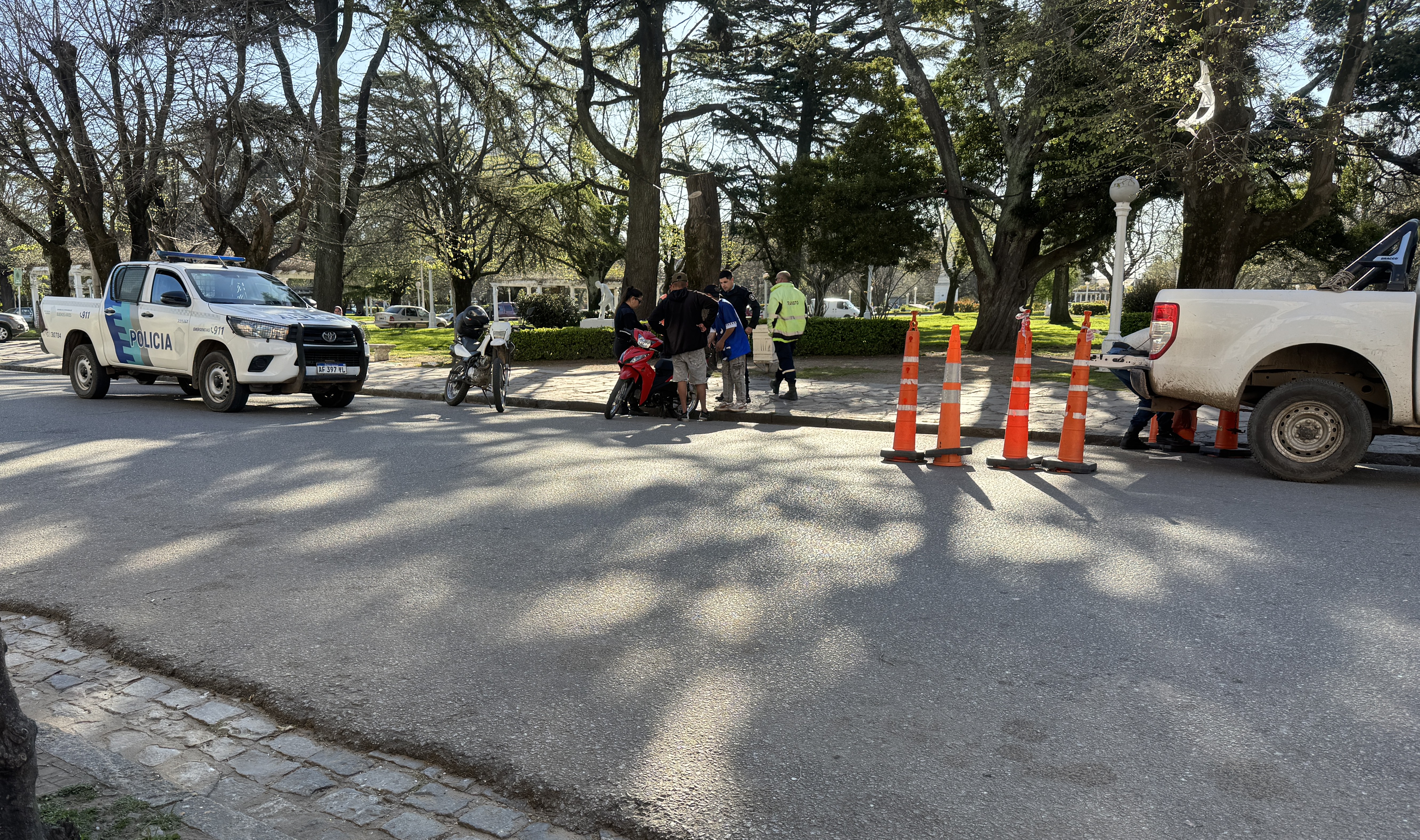 El procedimiento ocurrió cerca de las 17 horas, en plena salida de estudiantes de la Escuela Primaria N° 1 y del jardín del Colegio Parroquial, lo que generó gran movimiento en la zona.