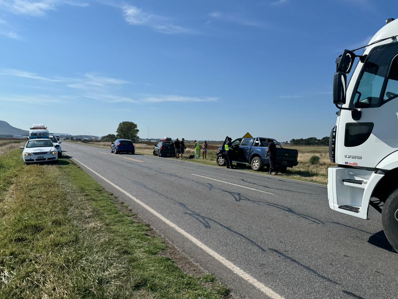 Un carretón atravesado sobre la Ruta Nacional 226, a la altura de la salida del Frigorífico Municipal, generó en la mañana de este lunes una situación de riesgo que terminó en un siniestro vial.