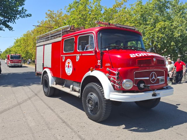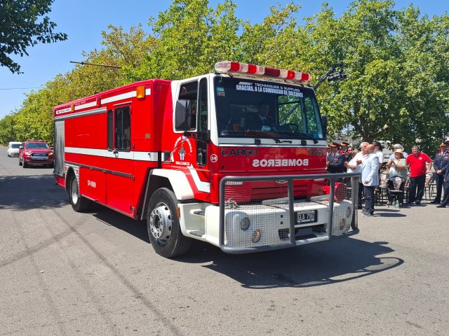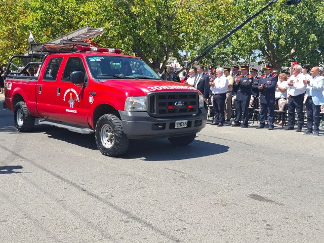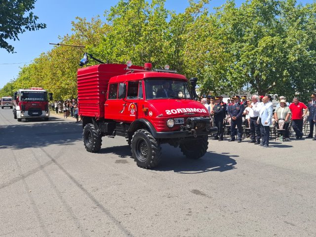 El desfile de unidades de los Bomberos Voluntarios se desarrolló sobre la avenida Del Valle, entre calles 2 y 4, y fue uno de los momentos centrales del acto por los 75 años de la institución. Del recorrido participaron todas las unidades operativas, a las que se sumó la Unidad N°2, recientemente restaurada tras un año de trabajos y presentada oficialmente para la ocasión, generando un fuerte acompañamiento del público presente.