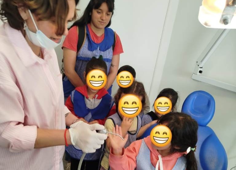 En el área de Odontología, la doctora Emilce Roldán mostró el consultorio y explicó el uso de los instrumentos empleados en la atención diaria. Además, los pequeños participaron de una charla educativa en la que se abordaron técnicas de cepillado y la importancia de mantener hábitos saludables para cuidar la salud bucal.