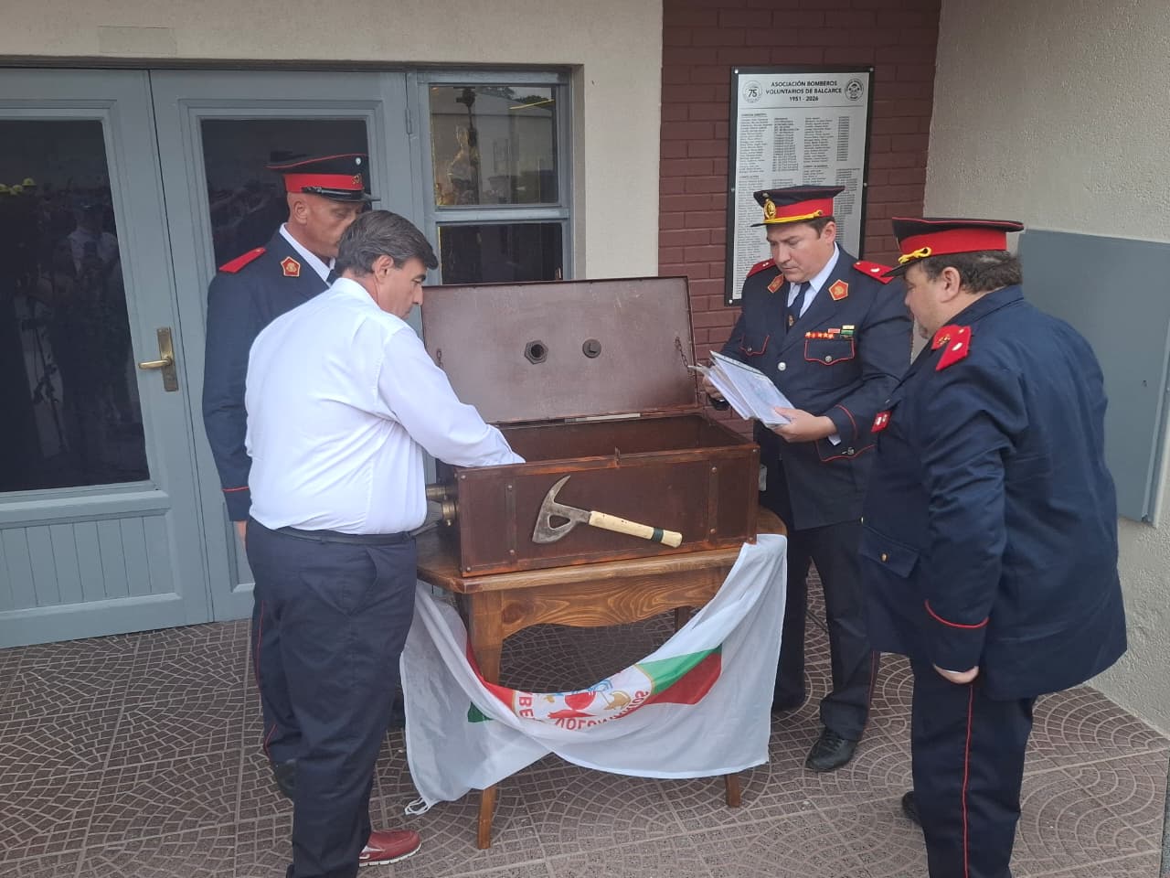Durante la ceremonia, miembros de la Asociación de Bomberos Voluntarios, junto a integrantes del Cuerpo de Bomberos, depositaron en su interior diversos elementos de valor simbólico y emocional, representativos del presente y de la identidad de la entidad.