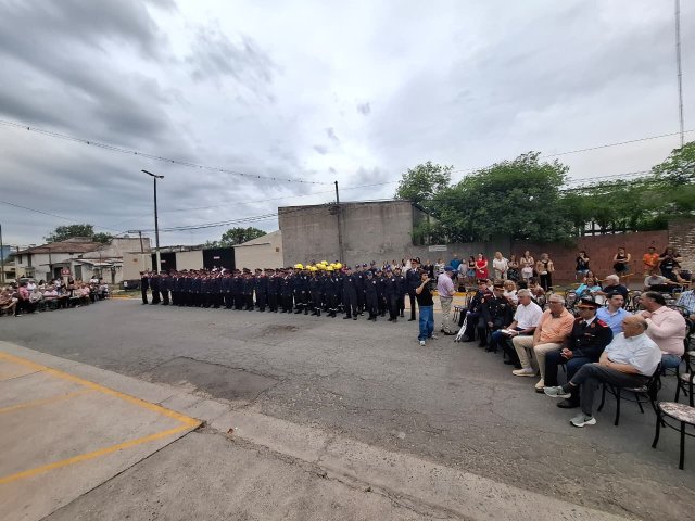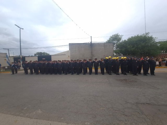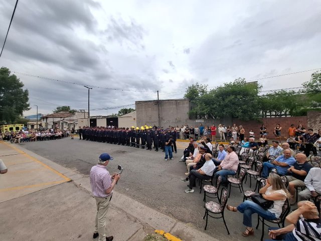 La ceremonia contó con la presencia del intendente Esteban Reino, el secretario de Gobierno Ricardo Stoppani, el presidente de la Asociación de Bomberos Voluntarios, Silvio Cattáneo, el jefe del Cuerpo Activo, Federico Mancini, el presidente del Honorable Concejo Deliberante, Agustín Cassini, además de autoridades políticas, exintegrantes del Consejo Directivo, colaboradores, Cuerpo Activo, Cuerpo de Reserva, Escuela de Cadetes, familiares de bomberos y vecinos.