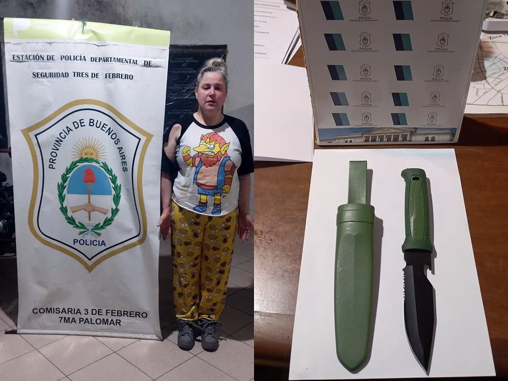 La agresora fue trasladada a la Comisaría Séptima de Ciudad Jardín, donde se confirmó su identidad y se le incautó un cuchillo de supervivencia con una hoja de 20 centímetros, según el parte de la Policía Bonaerense.