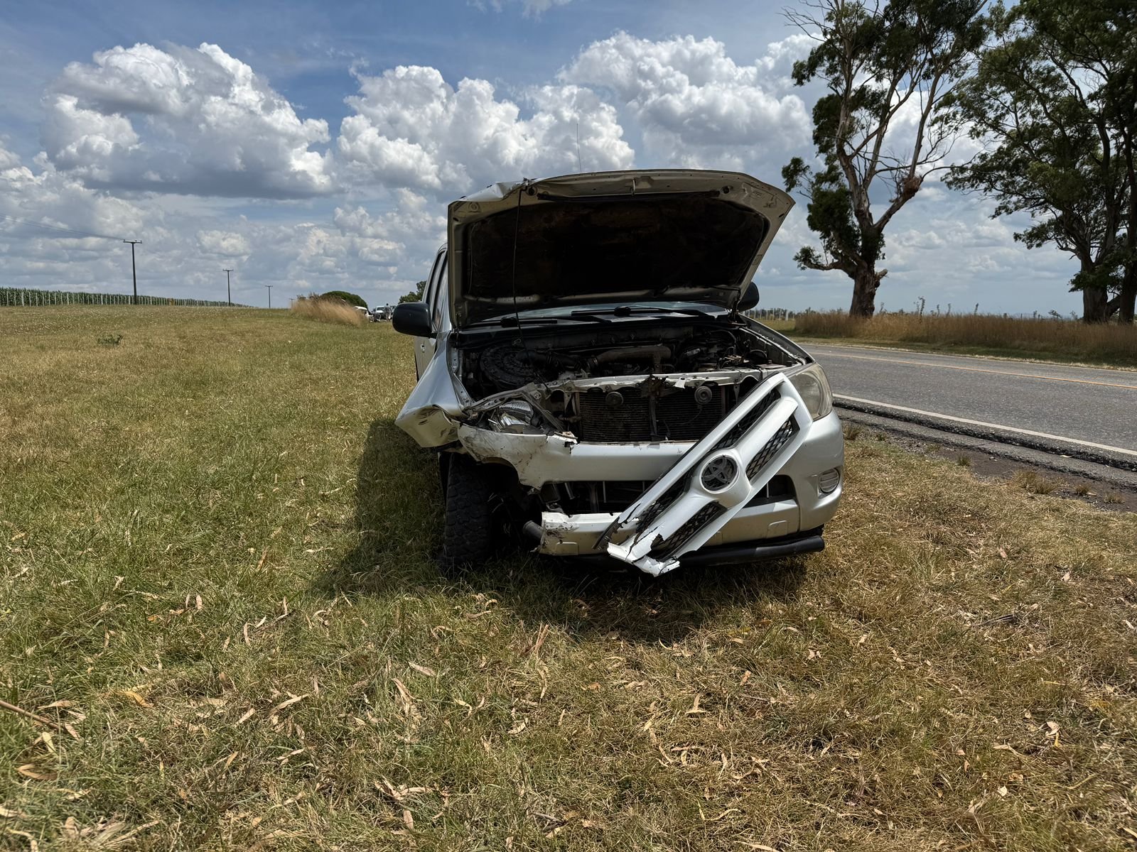 Un fuerte accidente de tránsito se registró en la tarde de este lunes sobre la Ruta Provincial Nº 55, cuando una camioneta Volwswagen Saveiro y una Toyota Hilux colisionaron a la altura del paraje El Desvelo, a unos cinco kilómetros del cruce de las ruta provincial 55 y Ruta Nacional 226.