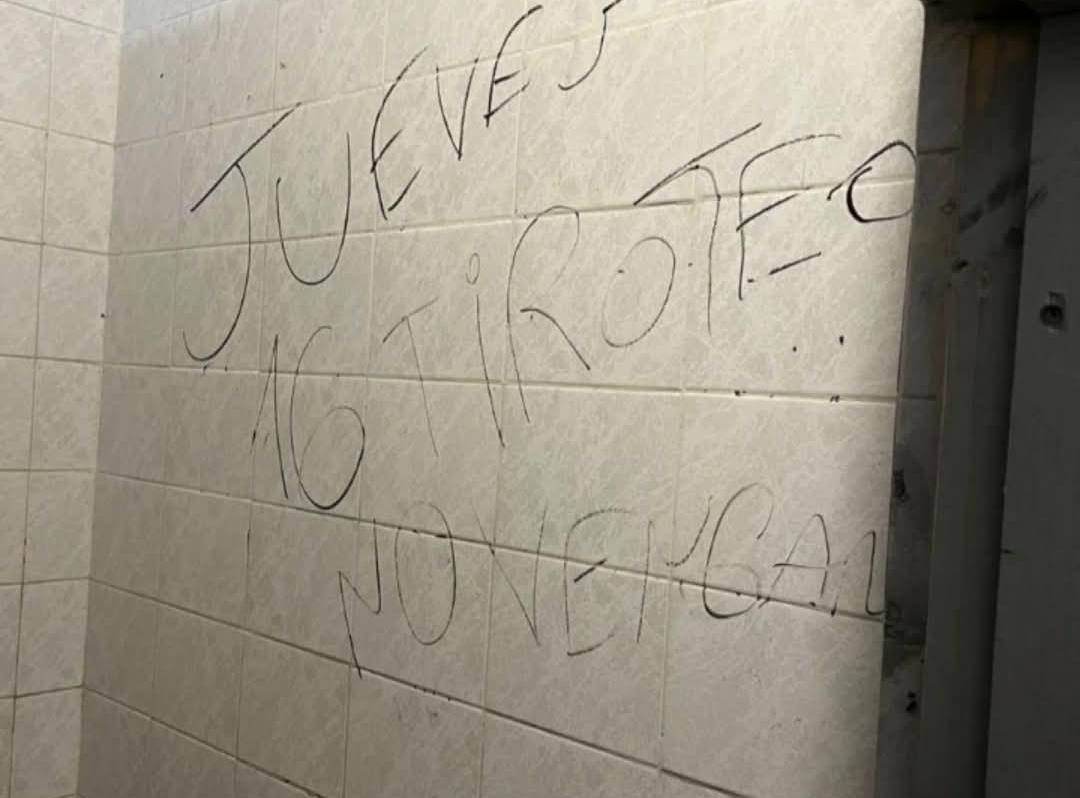 La comunidad educativa de la Escuela de Educación Secundaria Técnica Nº 1 se vio sacudida este miércoles por la aparición de un mensaje intimidante en uno de los baños del establecimiento, que advertía sobre un presunto “tiroteo” para este jueves.